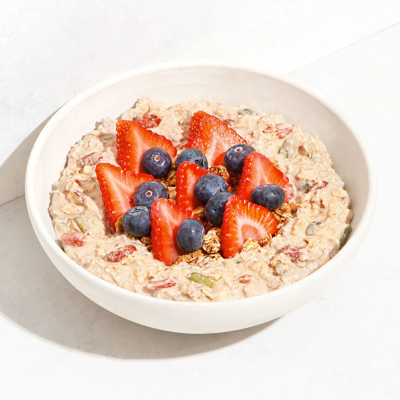 wholegrain gluten-free oats, almond milk, dates, goji berries, almonds, pumpkin seed, cinnamon • topped with strawberry, blueberry, vegan gluten-free granola* | *contains tree nuts: almond, walnuT