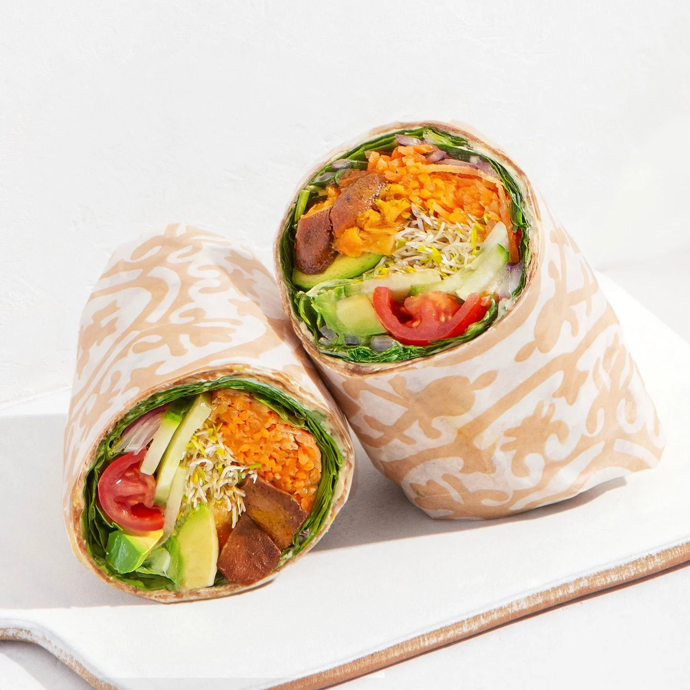 roasted sweet potato, hummus, spinach, avocado, cucumber, tomato, carrot, sprouts, red onion, herb vinaigrette, green tahini dressing* on the side | *contains sesame